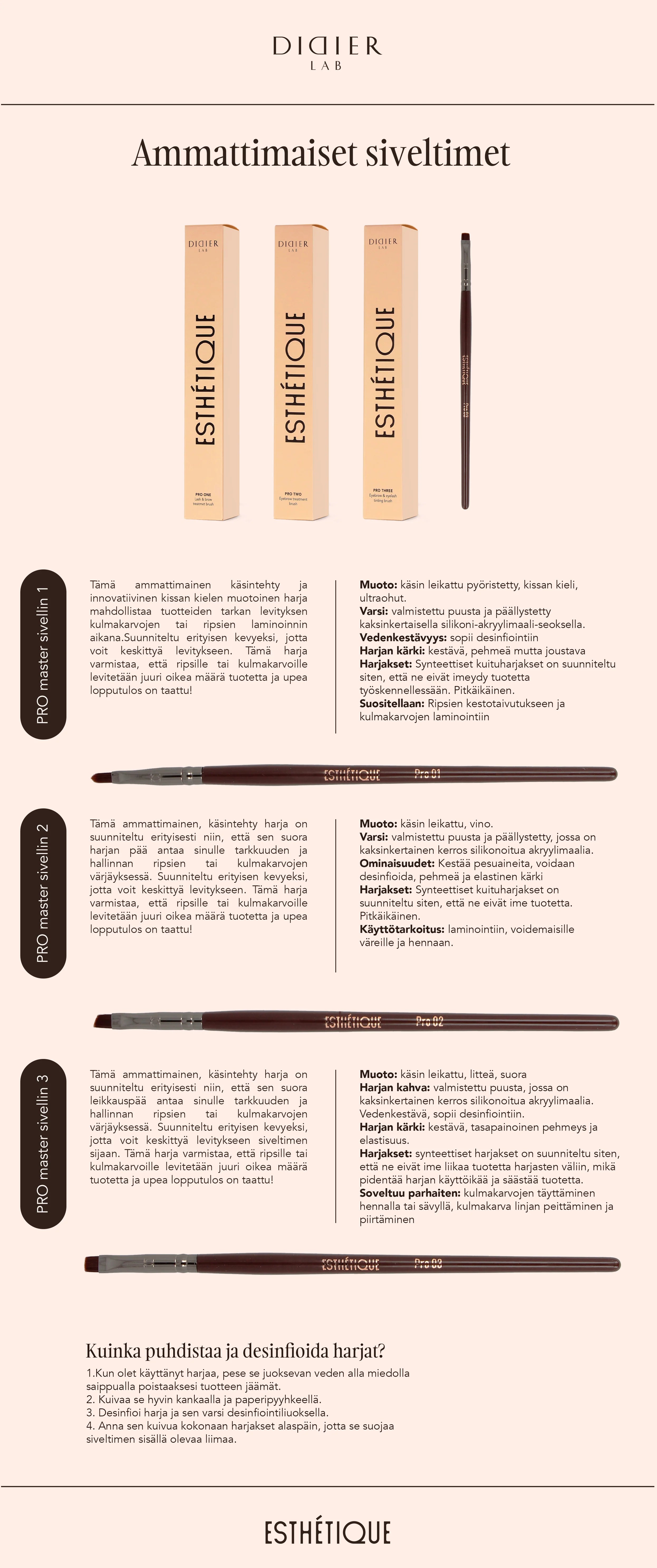 Harjakset: Synteettiset kuituharjakset on suunniteltu siten, että ne eivät imeydy tuotetta työskennellessään. Pitkäikäisyys.